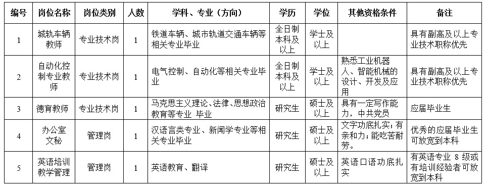 6.具备报考职位要求的资格条件(具体要求详见附件:《常州铁道高等职业技术学校2018年公开招聘教师、管理岗位表》)。