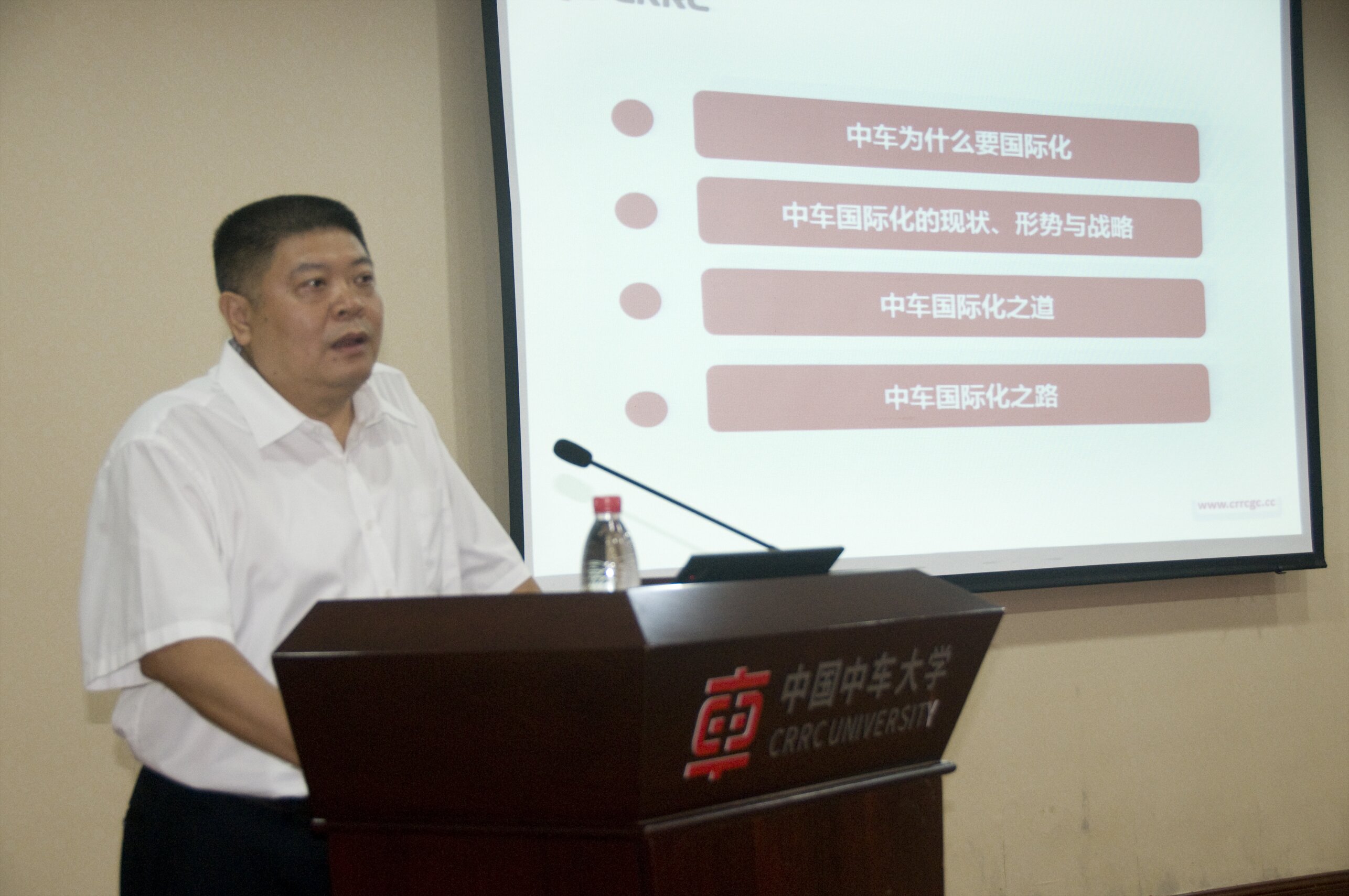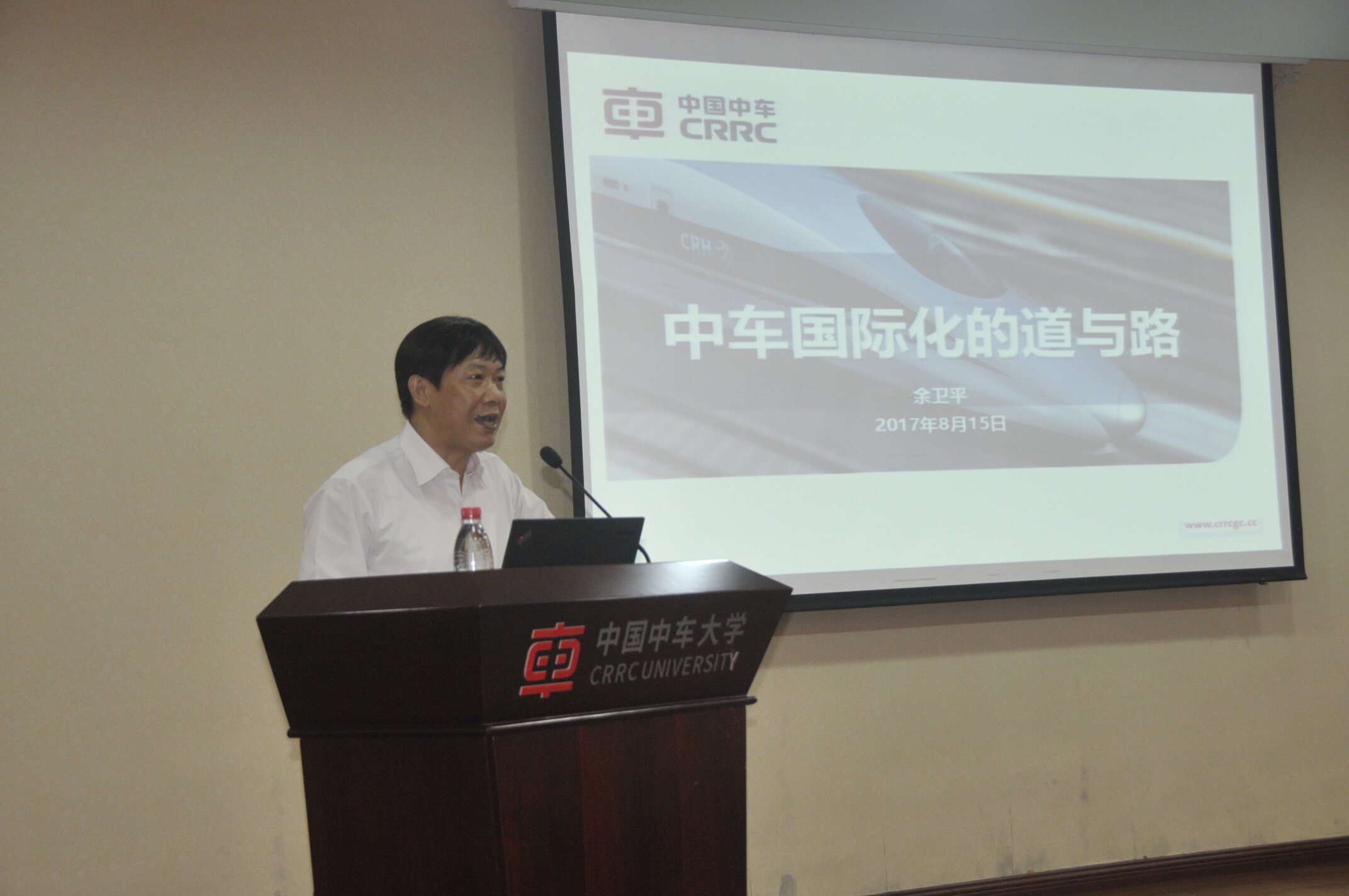 8月15日,中国中车副总裁、党委常委余卫平先生百忙中专程来中车大学(常州)为在校的中车国际化培训学员作了《中车国际化的道与路》专题讲座。中车大学副校长、常铁校校长曾金传,中车大学项目管理部部长、常铁校副校长苗苗,常铁校校长助理、项目办主任郭秀华和中车2017第二期国际化初级项目培训班学员、中车国际化技能人才培训班学员以及唐山轨道车辆专业英语培训班学员200余人到会聆听讲座。