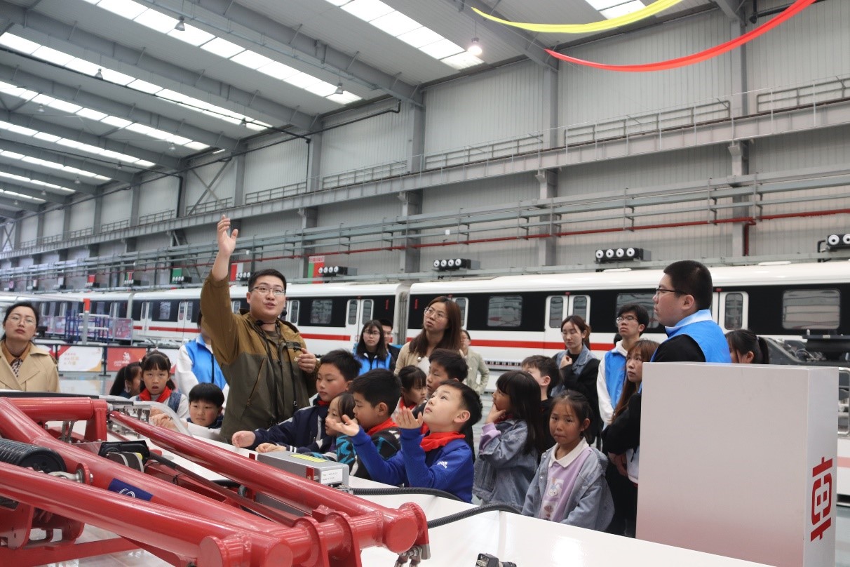 中车·常州“三位一体”产教融合基地陈列着各种型号的列车模型和标准地铁列车,小朋友们在互动问答中对轨道交通产品有了初步认知。在中车数字精益研修院,通过数字化产线运维场景,多元、立体、全方位地向大家展示了中车“智”造之美。