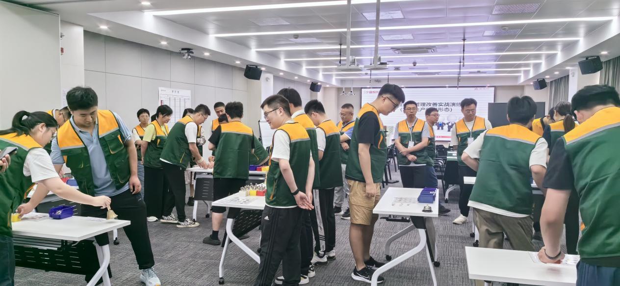 6月27日-7月26日,线下培训以实践为主,理论为辅,在实训中心进行,课程包括:《方针管理与实践》、《价值流管理》等内容。通过理实结合的教学方式,使得参训学员掌握精益运营管理中的方针战略及应用,通过模拟沙盘了解精益运营管理基本原理,经营数据的变化分析企业运营管理中问题,掌握价值流的核心本质等内容。课程结束,学员们在实训中心参加了技术技能考试。