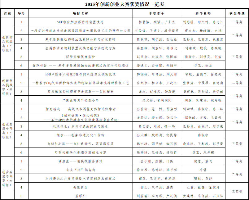 经过激烈角逐与公正评审,最终评选出各类奖项。获奖团队不仅展现出优秀的创新能力和实践精神,也为我校深化创新创业教育、推动项目培育与成果转化奠定了良好基础。