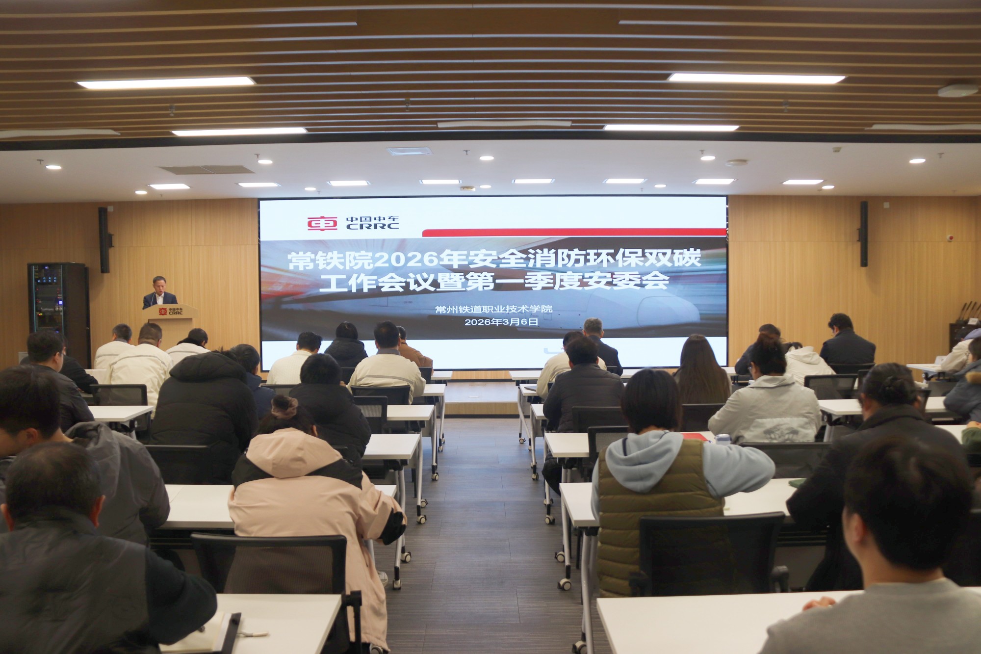 3月6日,学校在致远楼107室召开2026年安全消防环保“双碳”工作会议暨第一季度安委会会议。校长陈刚,中层领导干部,各部门安全员,智能制造学院和轨道交通学院辅导员、班主任、实习教师,保安队长、校医、物业主管、食堂和超市负责人等参加了会议。会议由安全与后勤服务中心副主任施伯华主持。