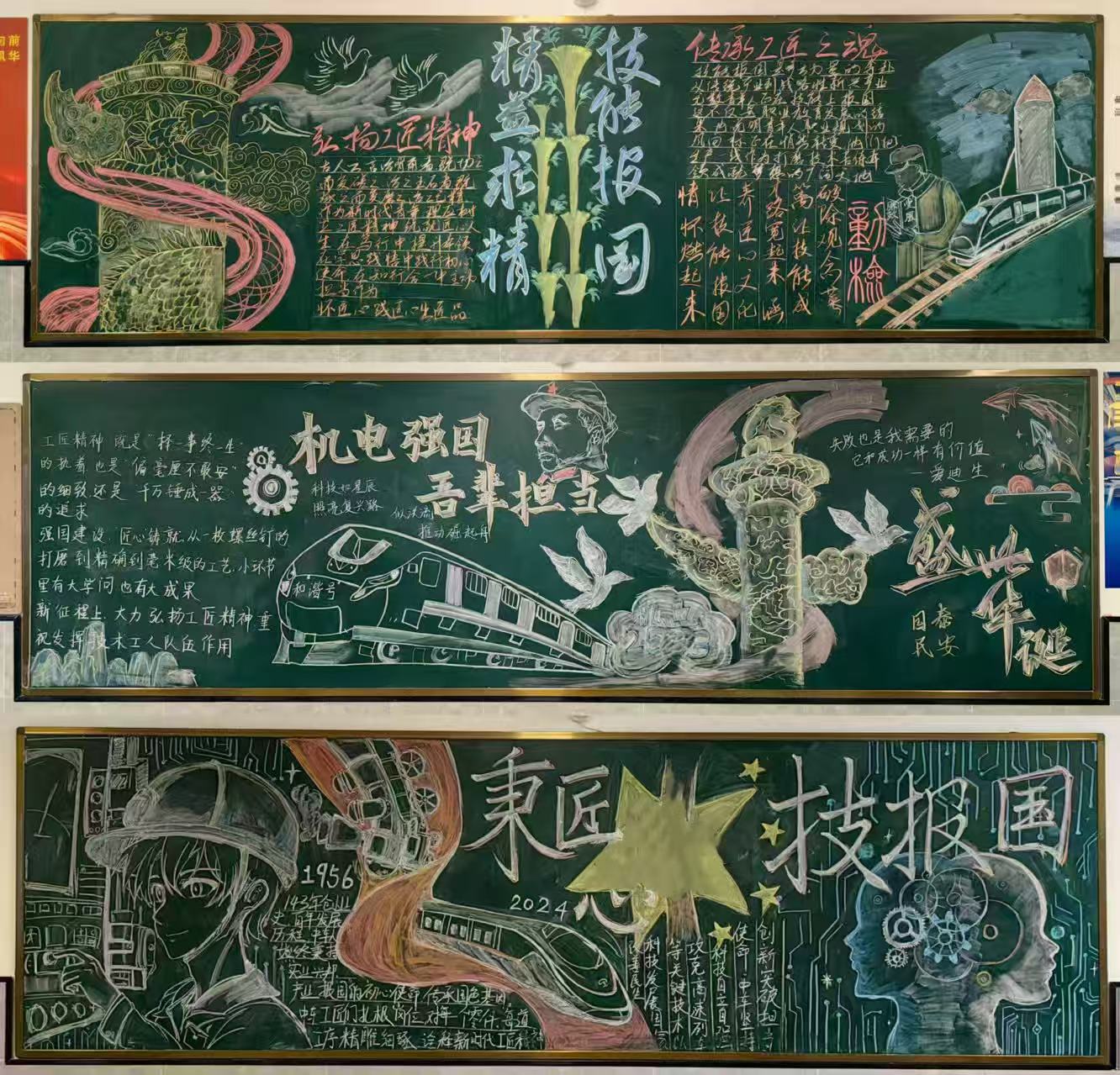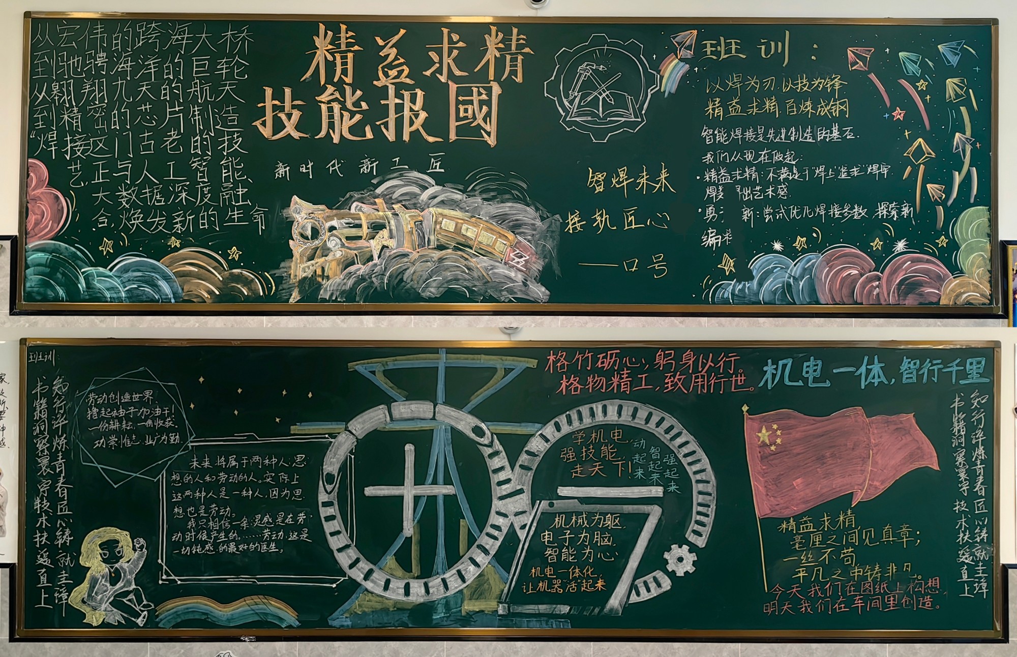 各班紧扣专业特色,以墙为纸,以心作画,将技术符号转化为温暖的文化表达。或以“技能报国”为设计主线,或以“系统协同,精准运行”为脉络,或张贴安全标语,彰显现代智能制造的系统之美。这些匠心墙,既是专业学习的“延伸课堂”,也是职业精神的“无声导师”。
