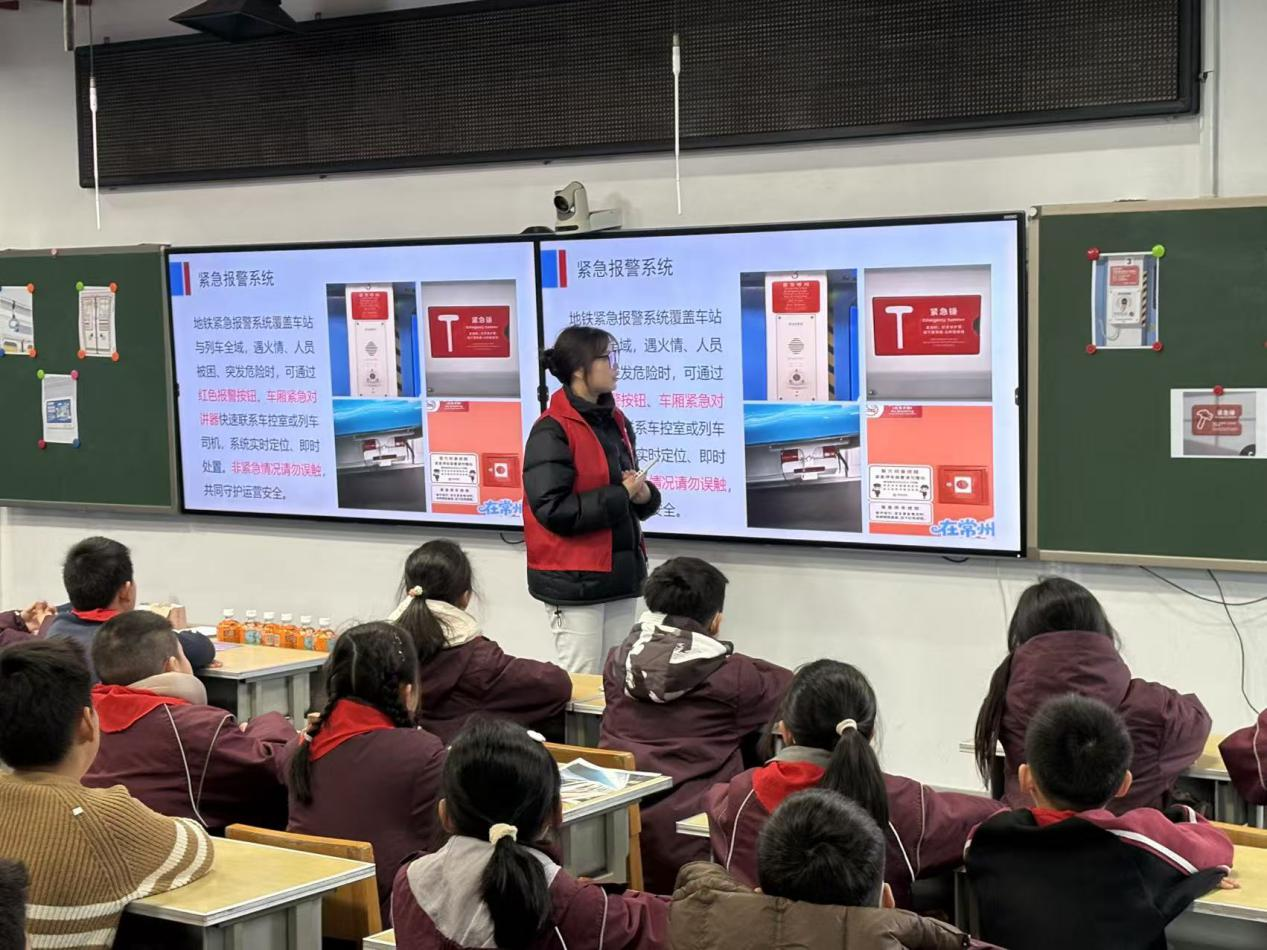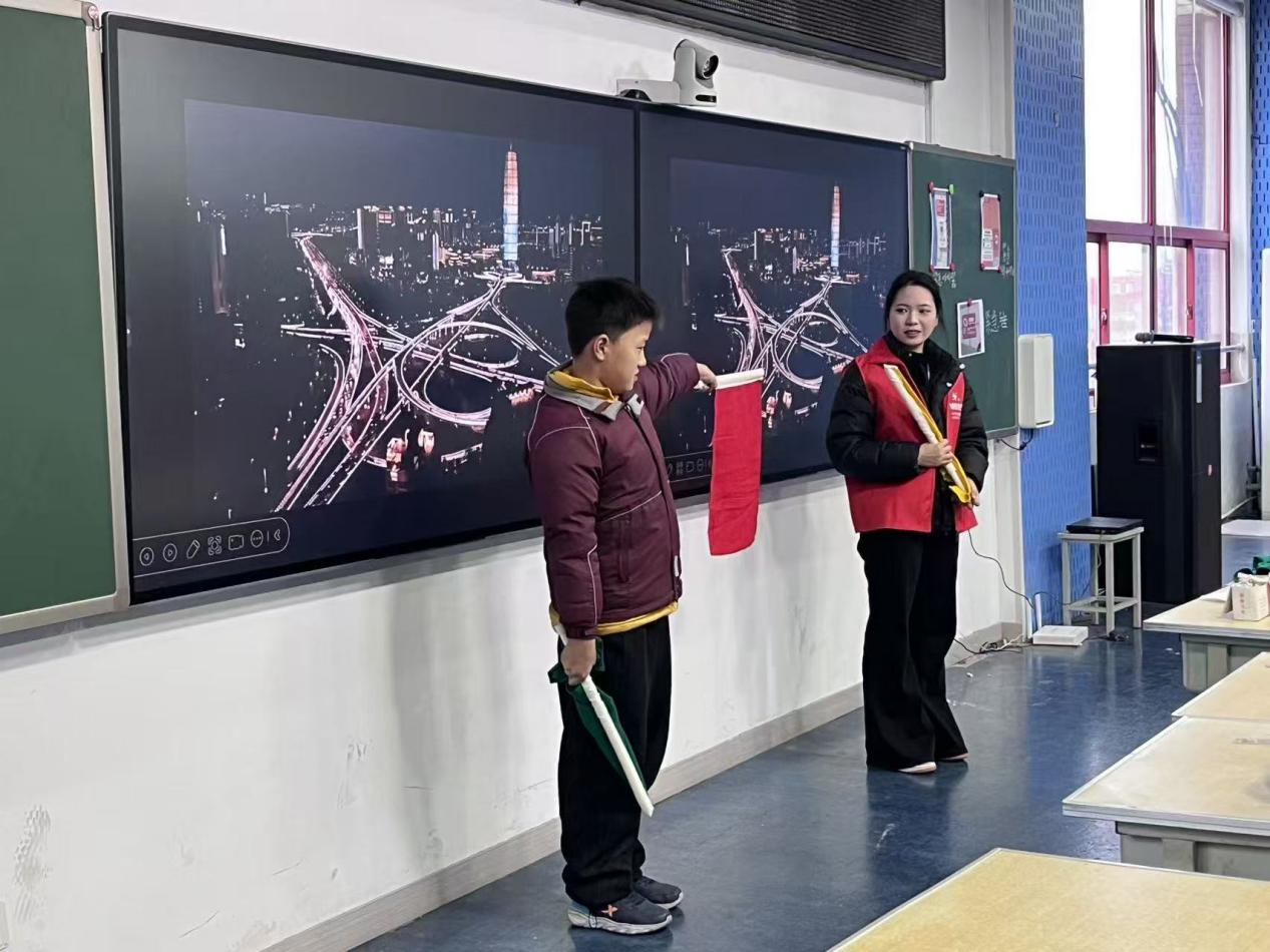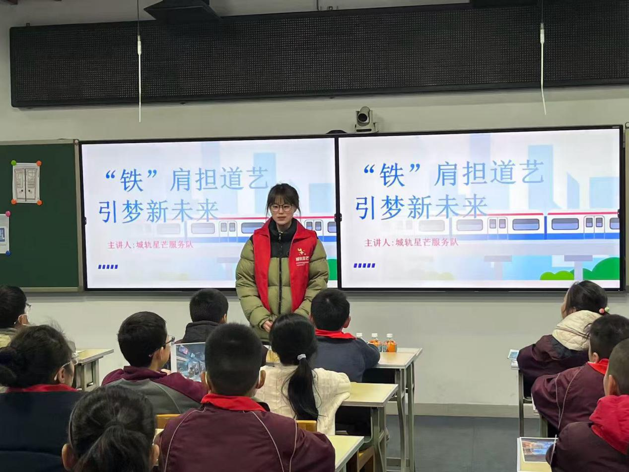 立足轨道交通运营管理专业特色,运营2252班团支部打破课堂与社会的壁垒,将专业知识转化为服务社会的硬核力量。团员们化身“轨道交通知识科普员”,走进小学课堂开展科普志愿服务。他们巧用列车卡通部件模型,以生动诙谐的语言拆解专业术语,不仅向孩子们深入浅出地讲解地铁信号系统的安全运行原理,还普及了乘车安全实用知识。妙趣横生的科普课堂,既点燃了孩子们对轨道交通领域的好奇火种,拓宽了青少年的知识视野,更让青年团员在知识传递中深化了对专业价值的认知,锤炼了理论联系实际的能力。这种“专业技能+公益服务”的创新模式,让课堂所学真正落地生根,彰显了轨道交通学院青年立足专业、服务社会的责任担当。